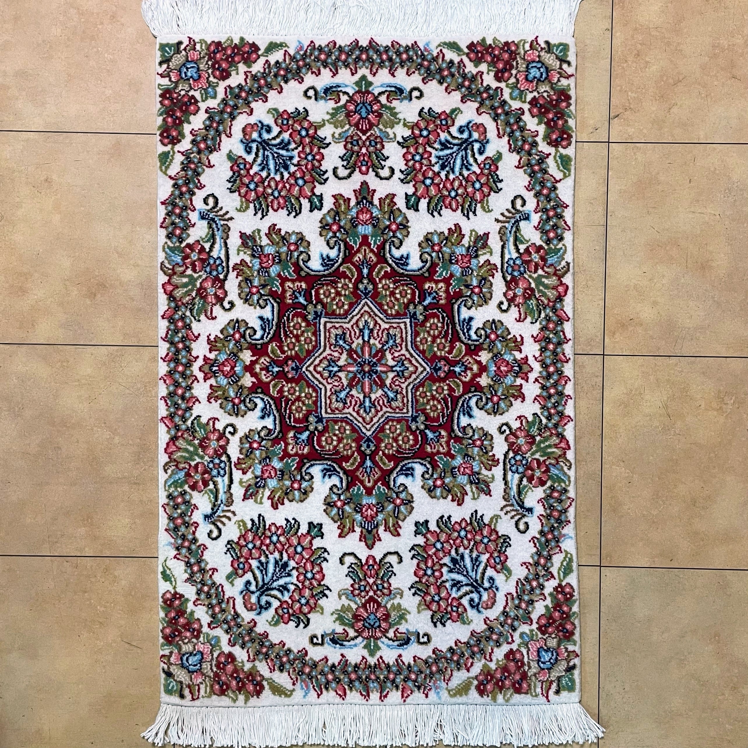 ペルシャ絨毯 クム産 ハイグレード 玄関マット サイズ 63/94cm ph-23-4695