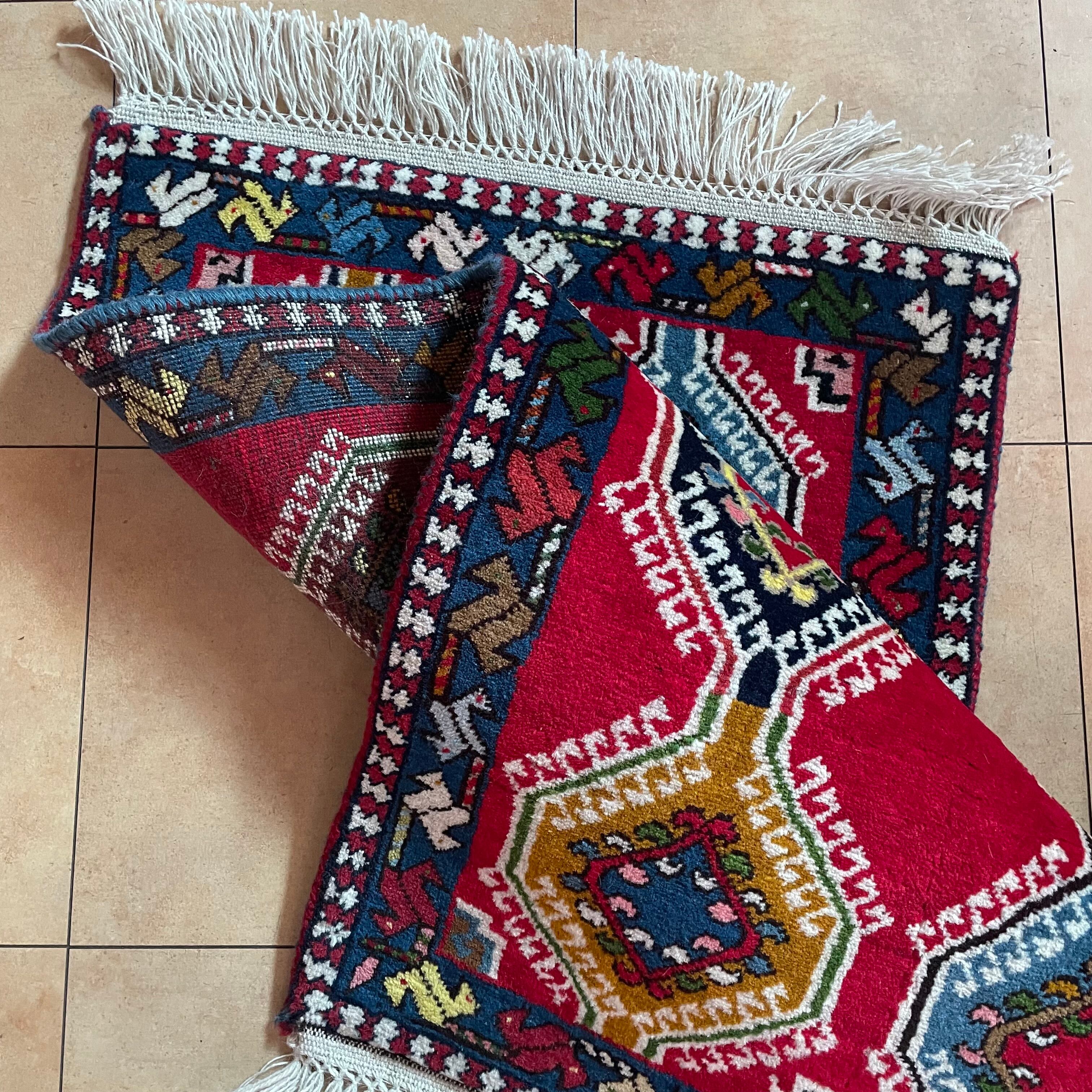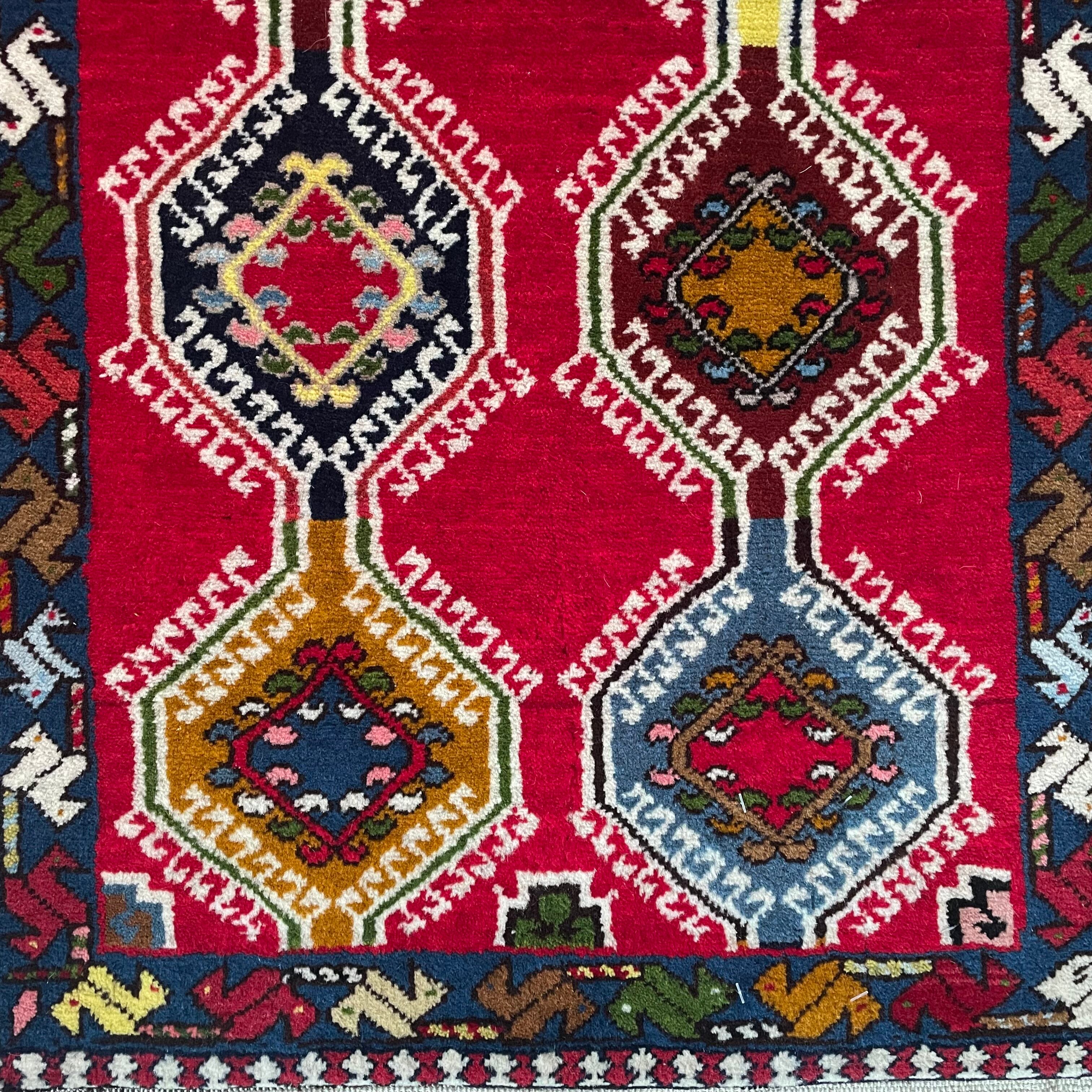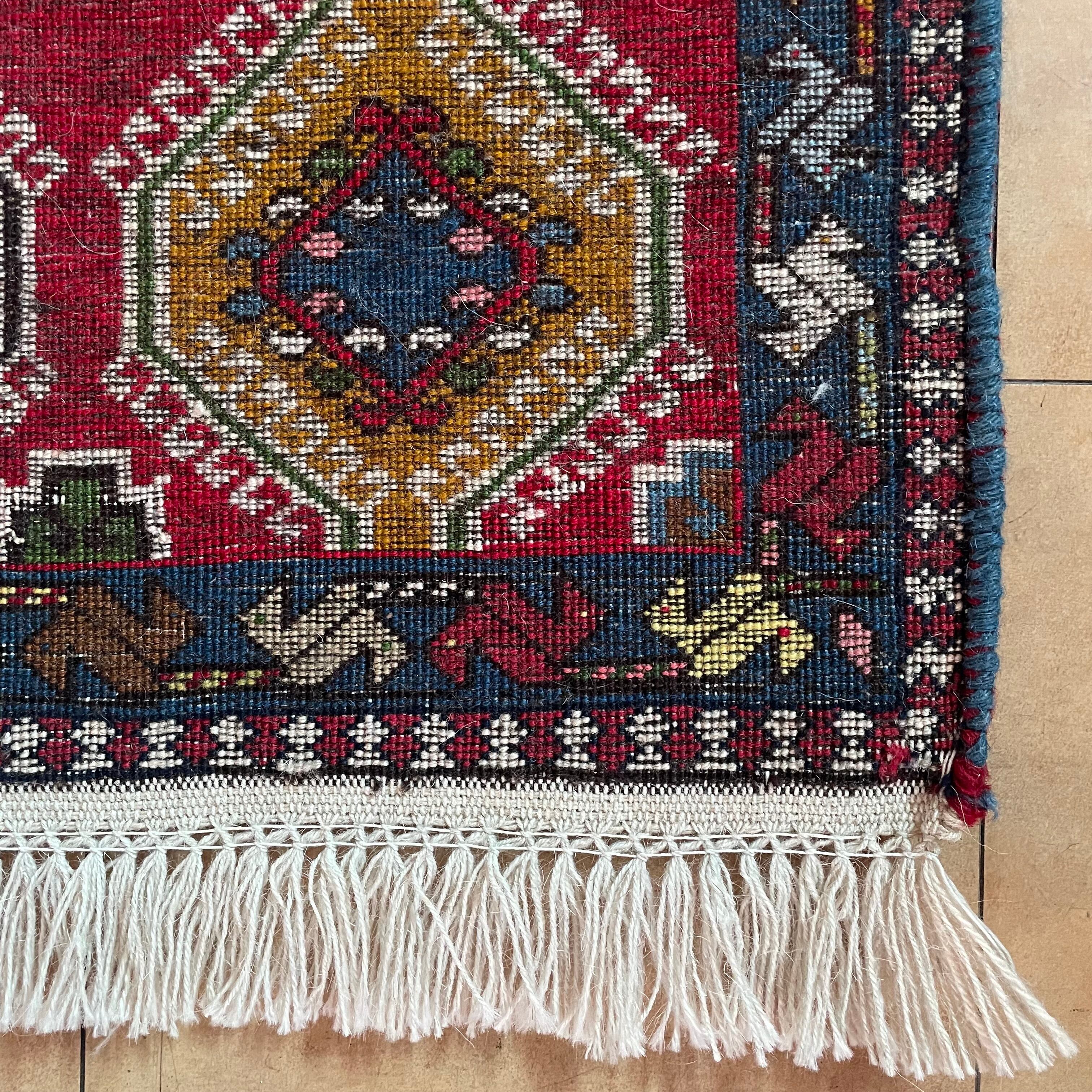 ペルシャ絨毯 ヤラメ産 玄関マット アンティーク調 カラフル ウール オールシーズン トライバルラグ サイズ 60/101cm ph-23-7232