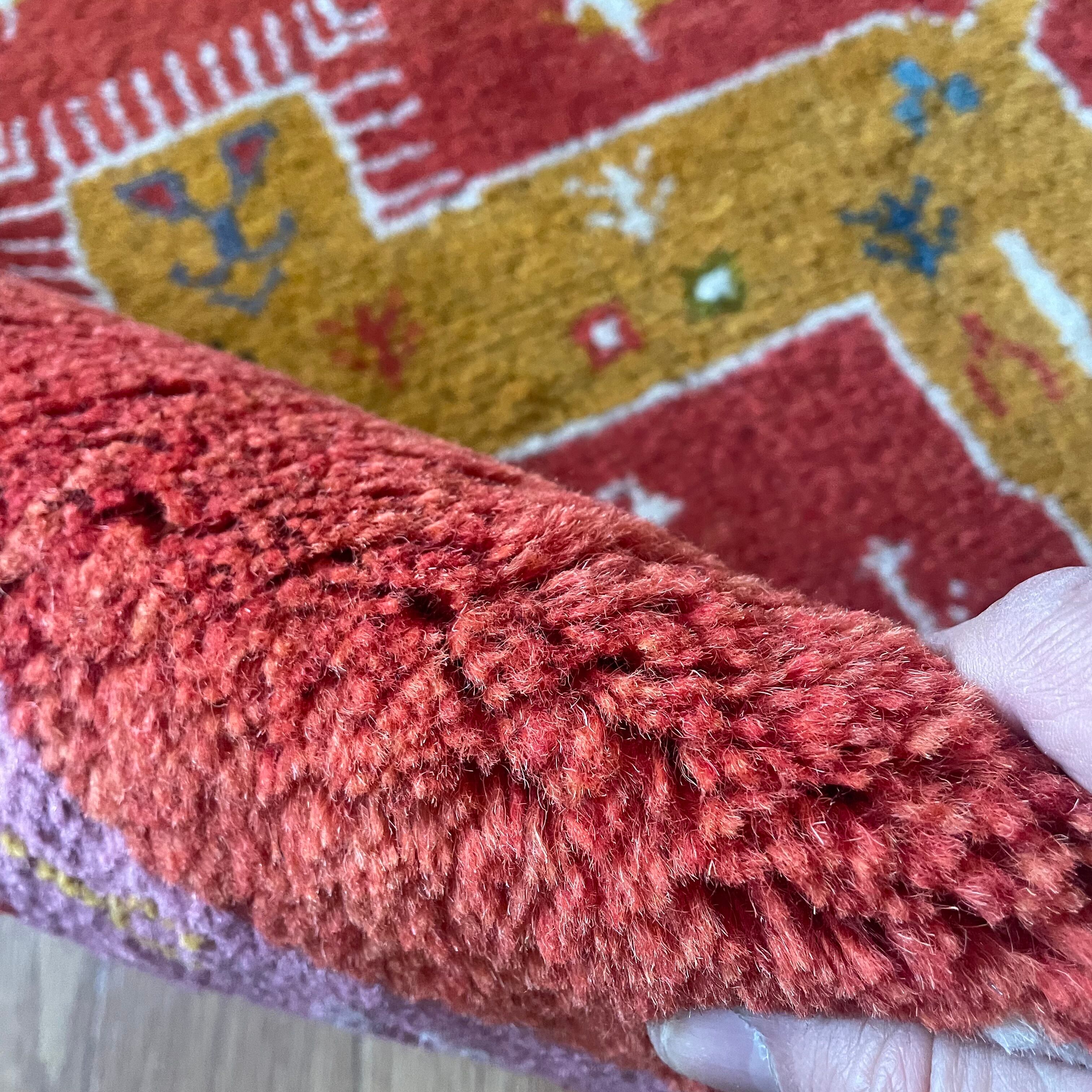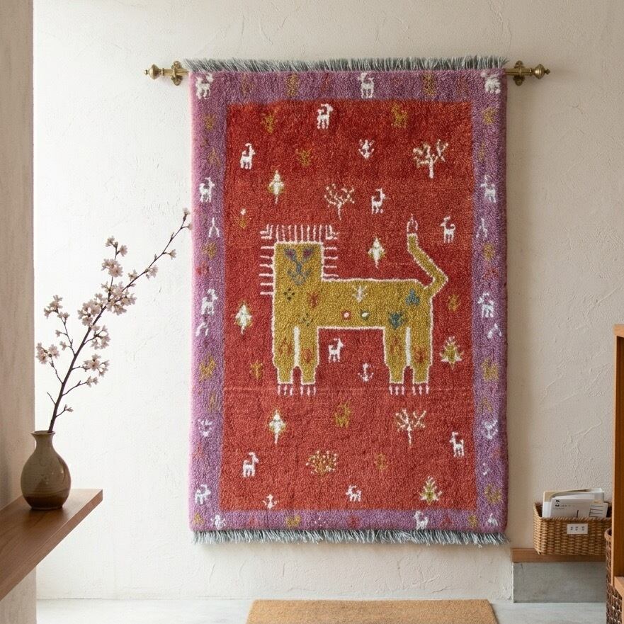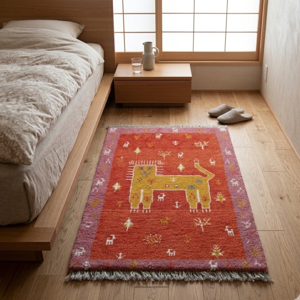 【一点もの】モダン・ヴィンテージのアクセント。ギャッベ ライオン 61×91cm | 玄関、ベッドサイドを彩る手織りの温もり