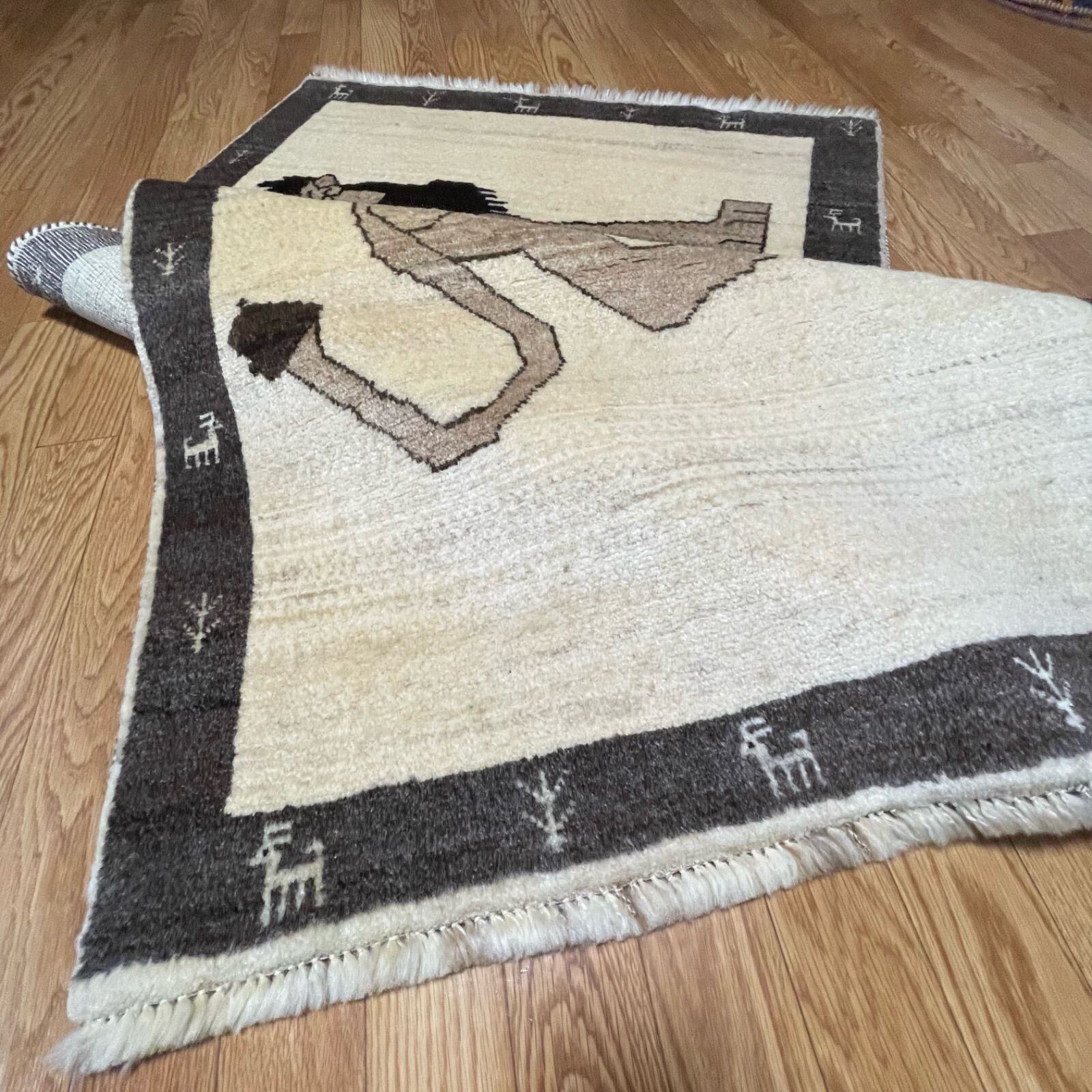 最高級ギャッベ ロリバフ 90×163cm ライオン 獅子 絨毯 本物 手織り ペルシャ ラグ