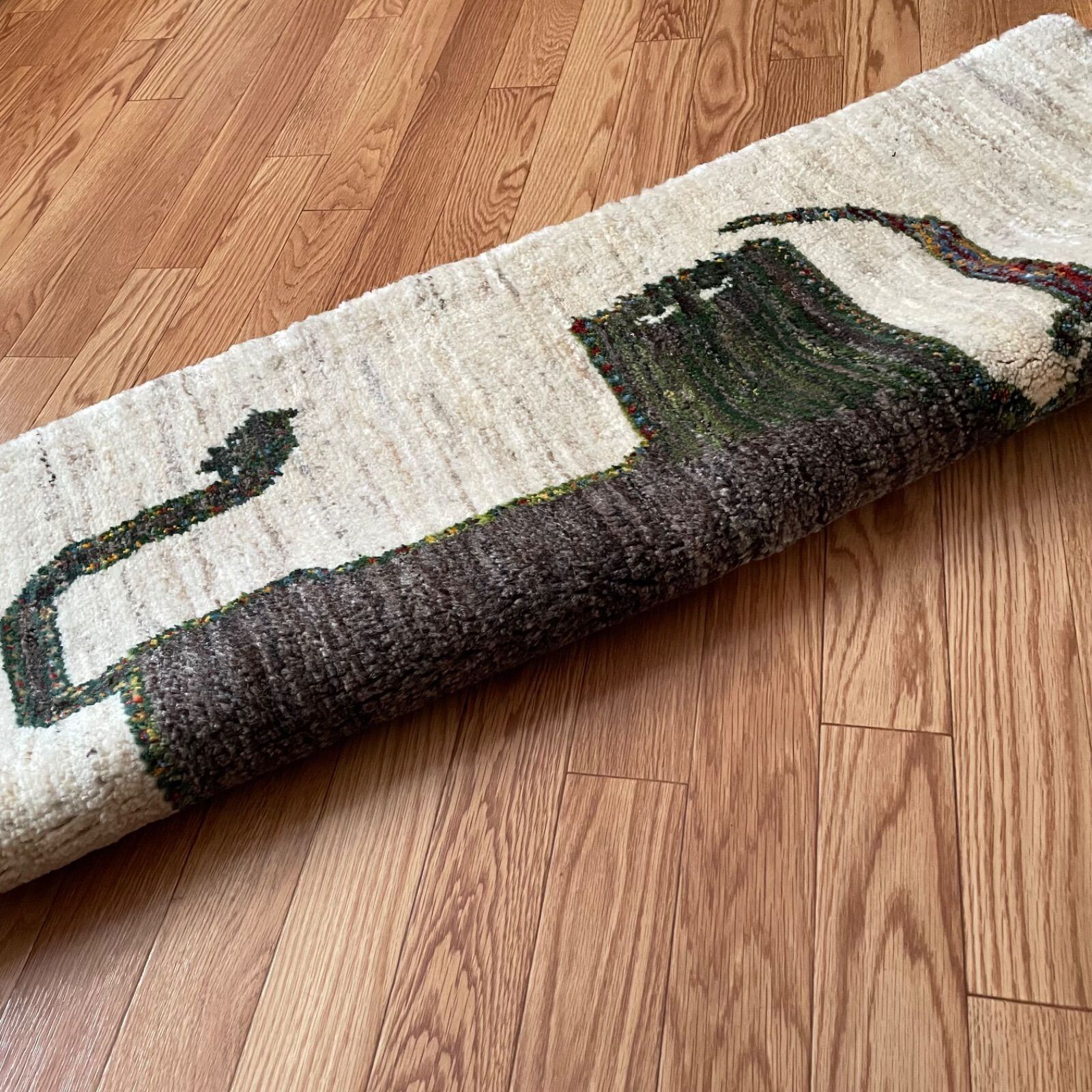ペルシャの遊牧民によって一枚一枚丁寧に織り上げられた、希少なライオンモチーフのギャッベです。