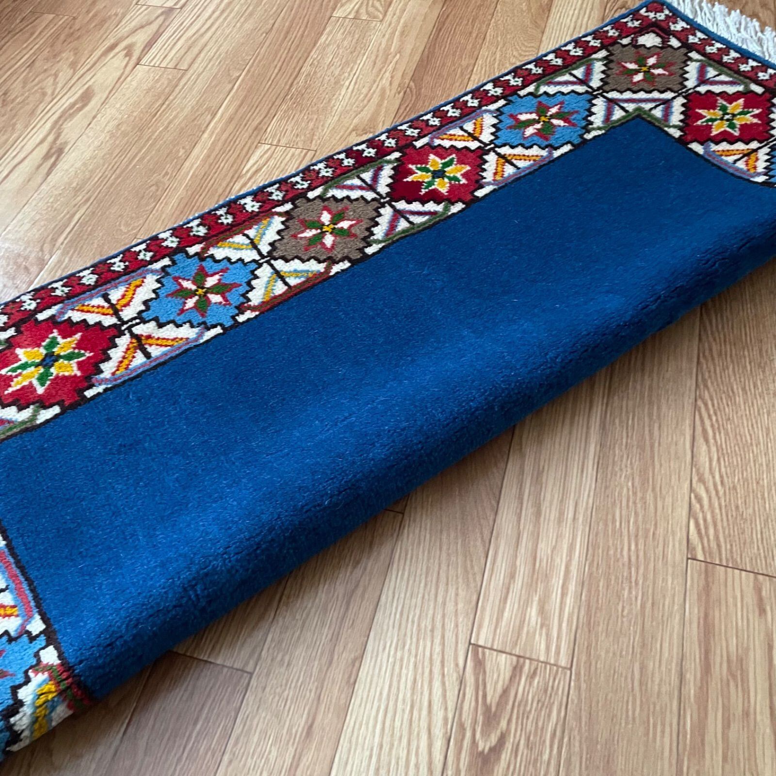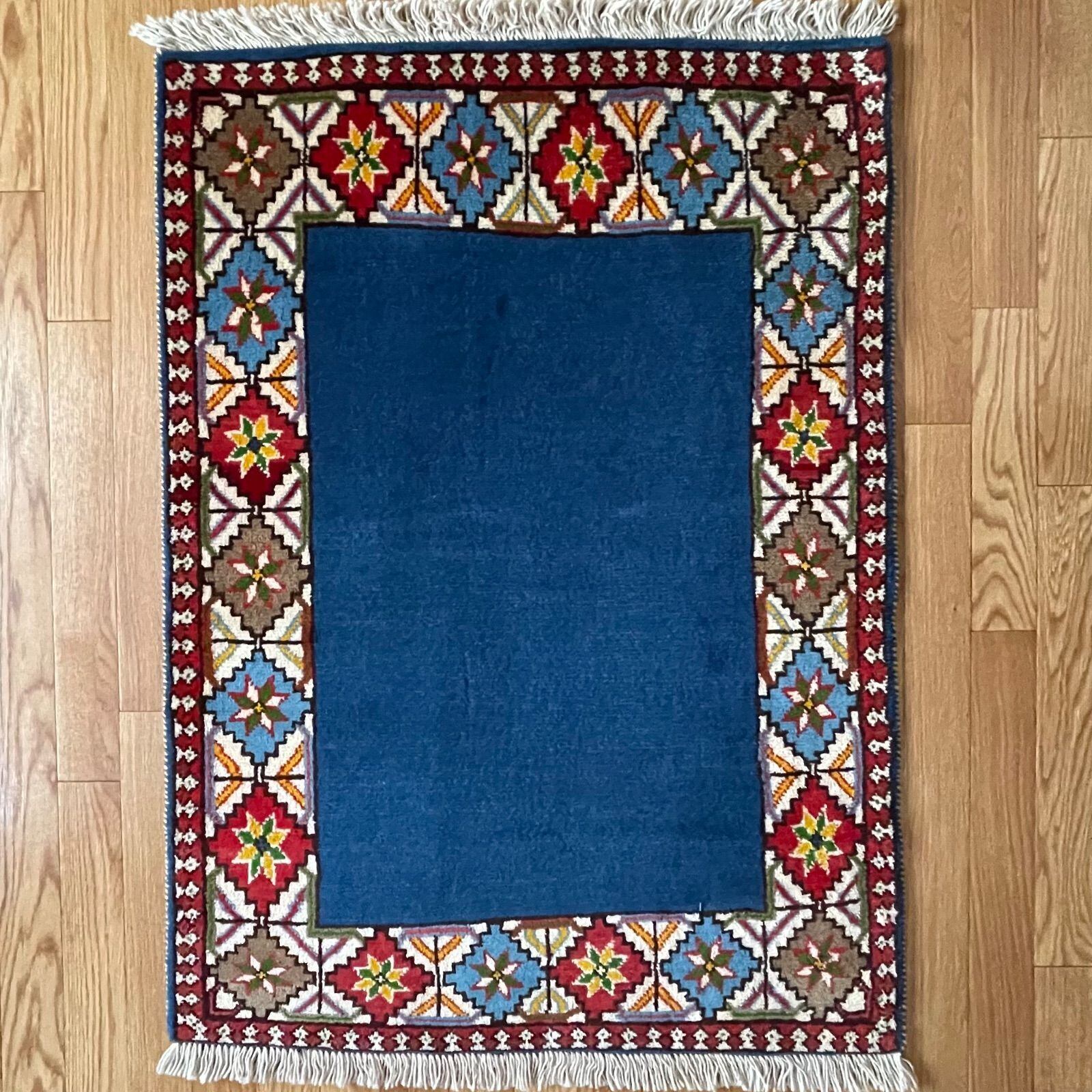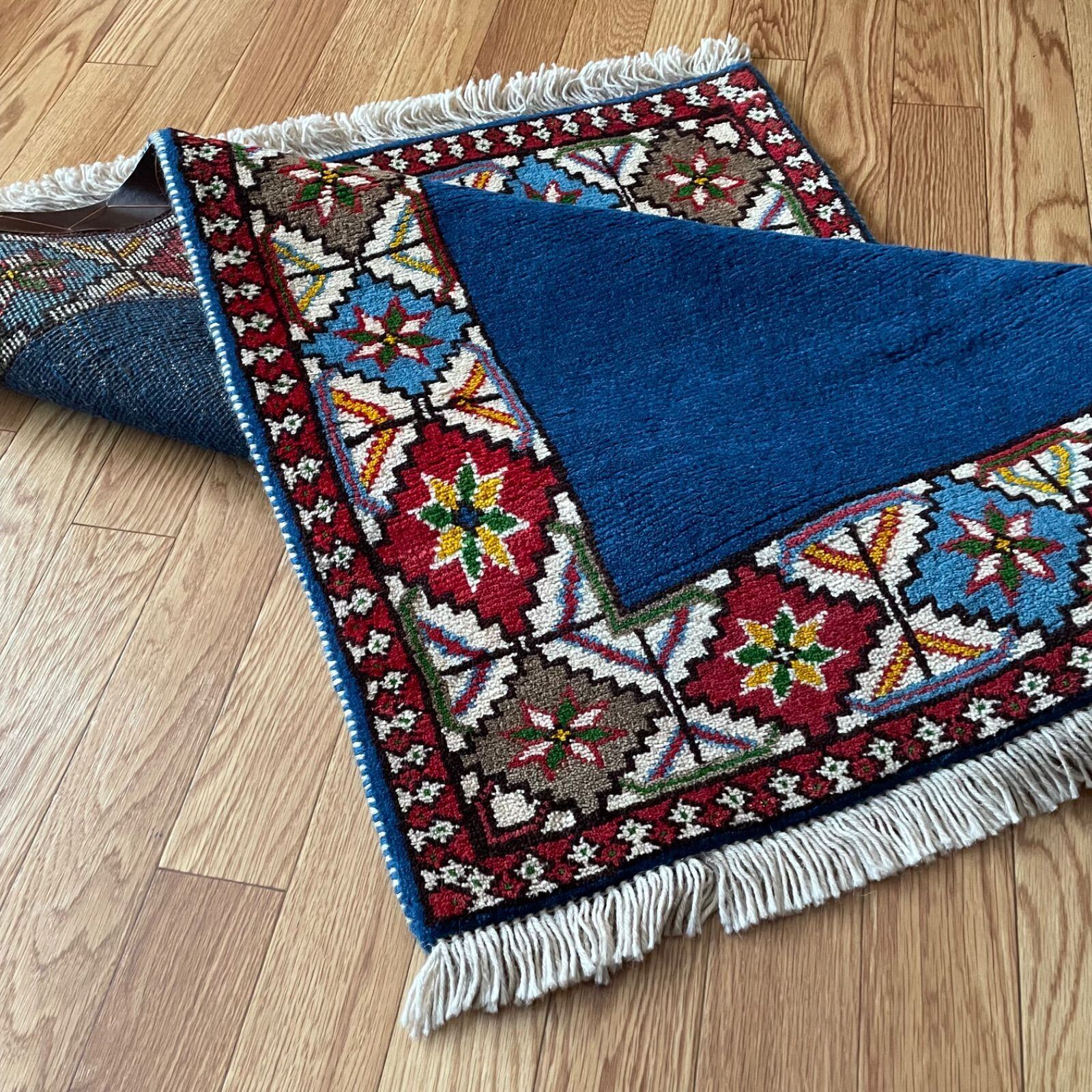 【ヤラメ産】本物 手織りペルシャ絨毯 85×115cm ブルー 玄関マットやパーソナルチェアの足元に