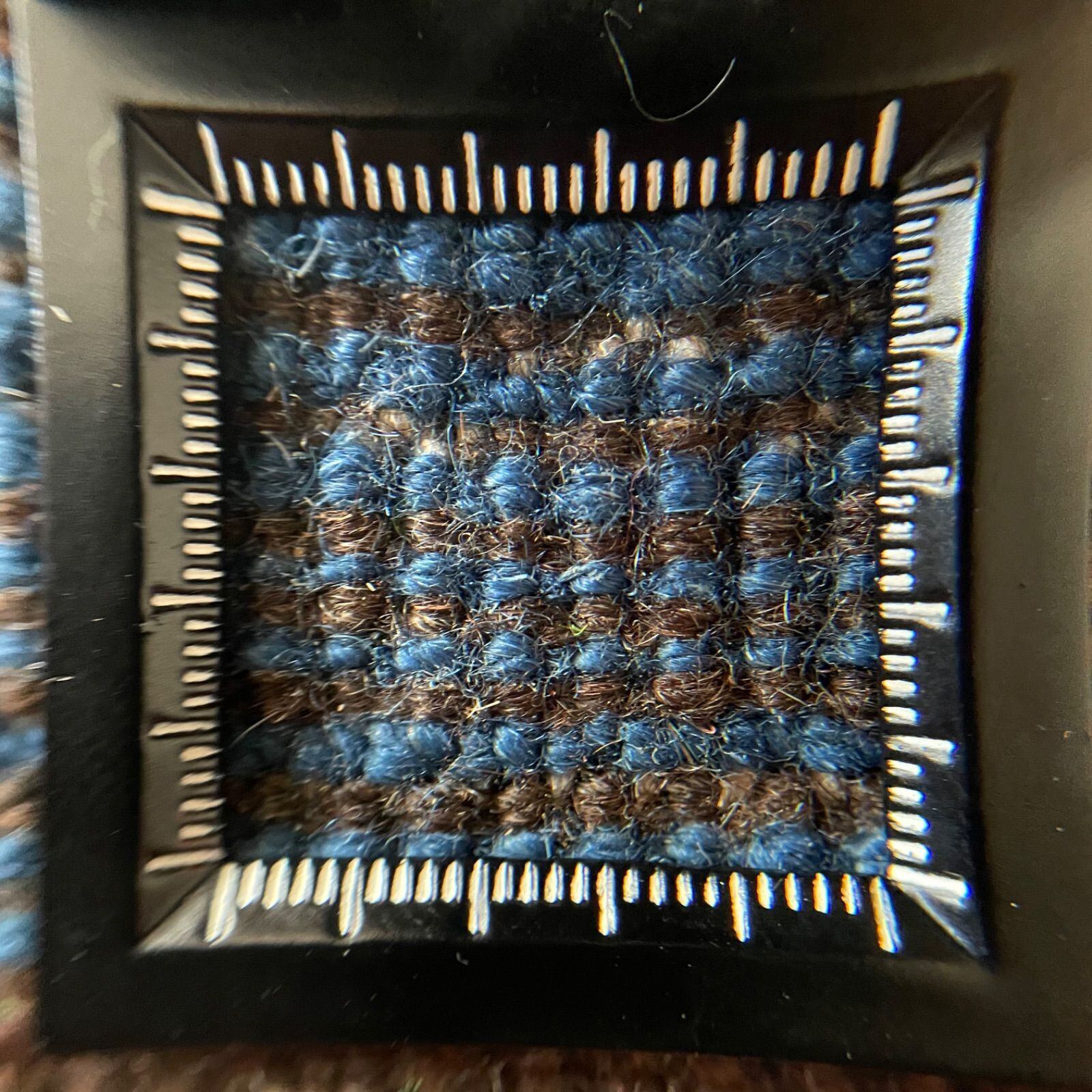 本品の最大の特徴は、中央に大胆に配置された深みのあるインディゴブルー。周囲の多色使いな紋様とのコントラストが美しく、伝統工芸品でありながら現代のインテリアにも見事に調和する、洗練された一枚に仕上がっています。