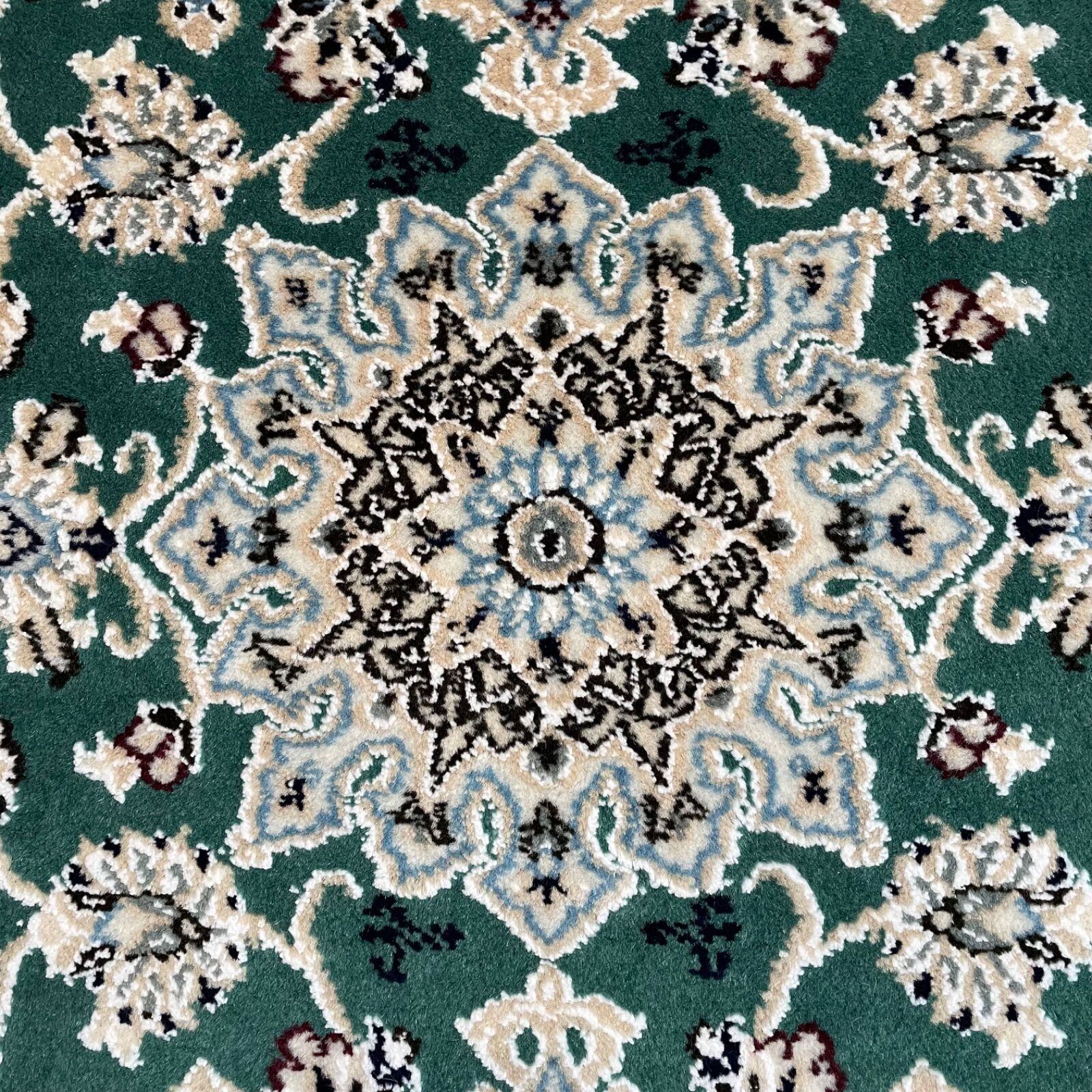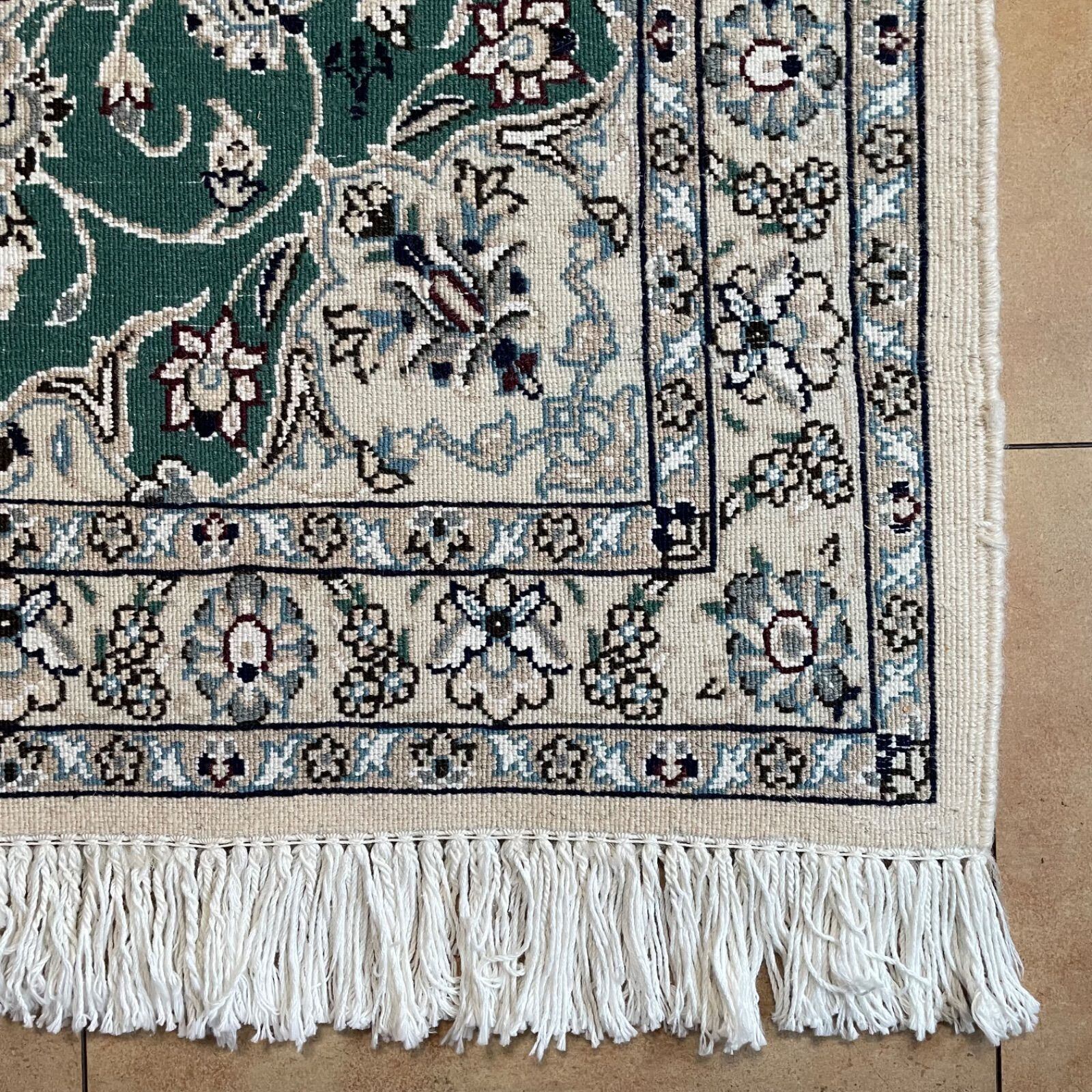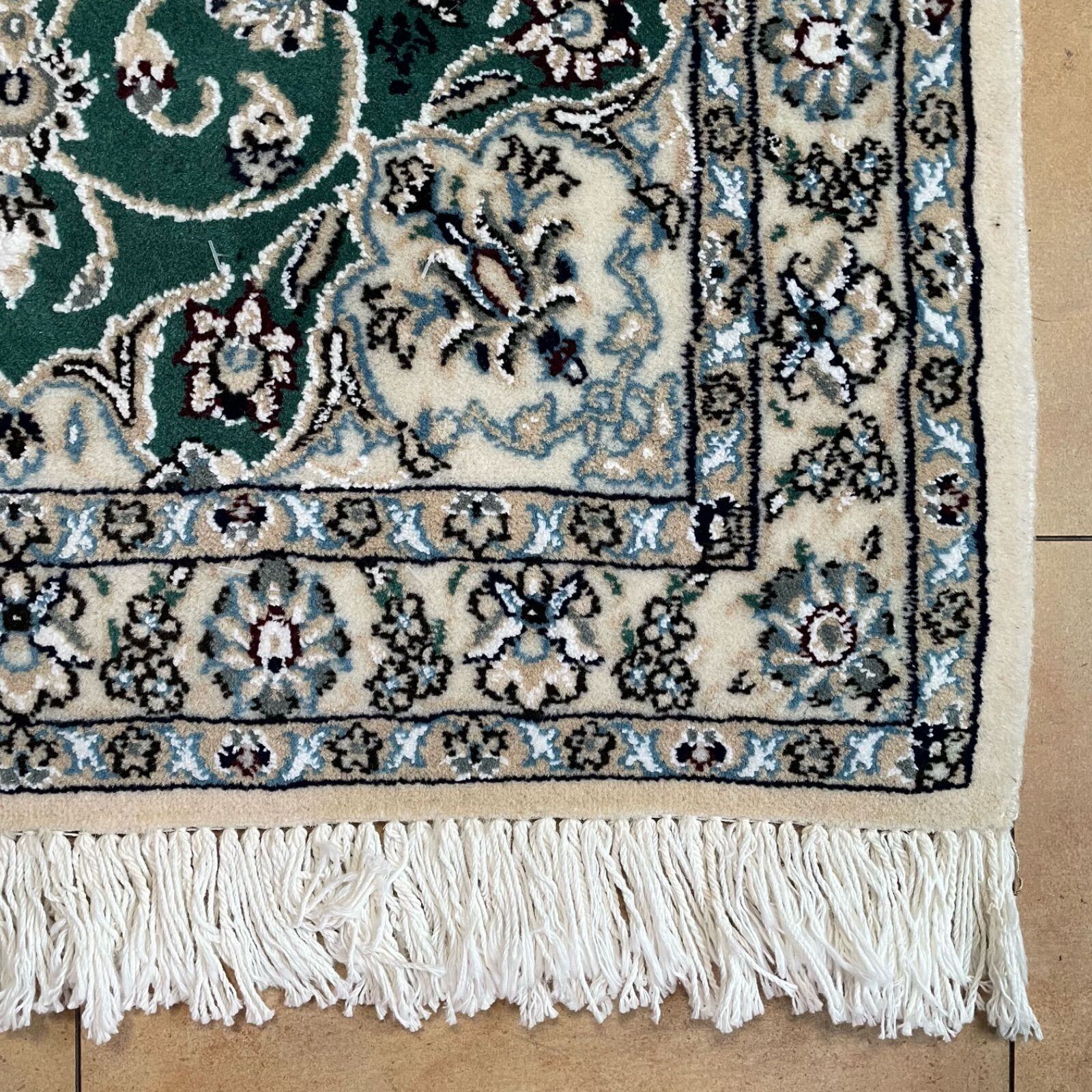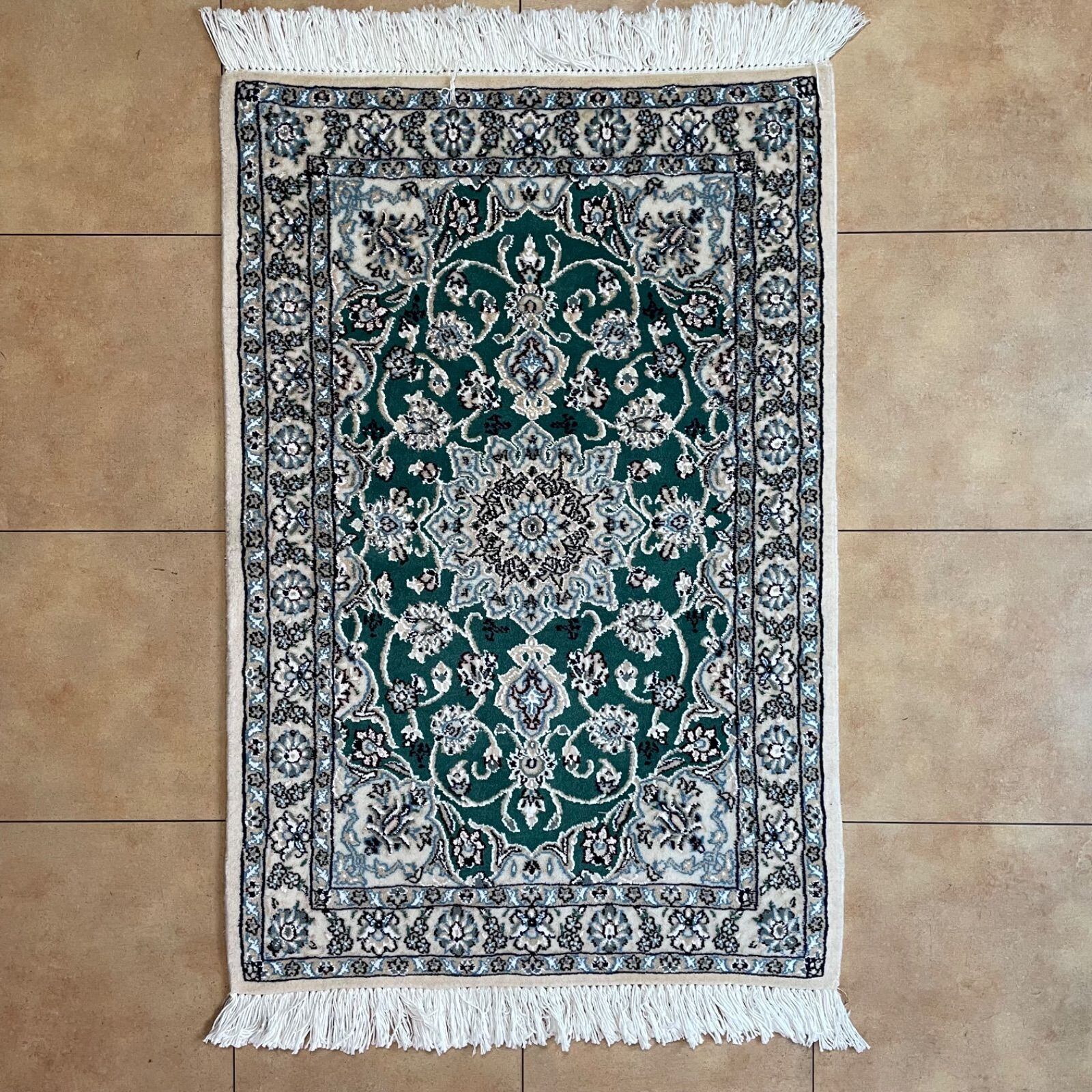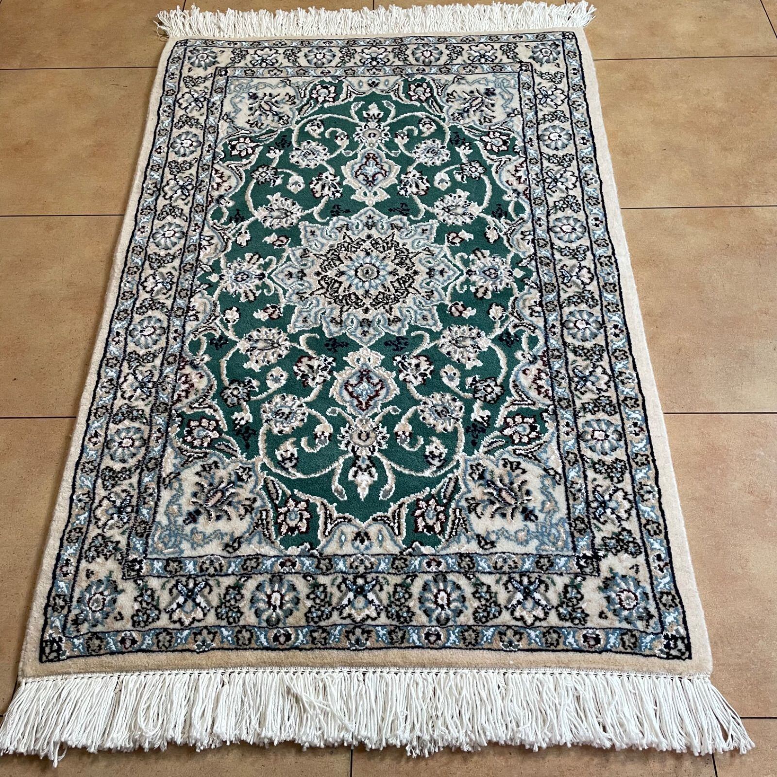 ペルシャ絨毯 ナイン産 エメラルドグリーン 手織り 玄関マット シルク&ウール イラン直輸入 本物保証 ラグ 65 ×93cm
