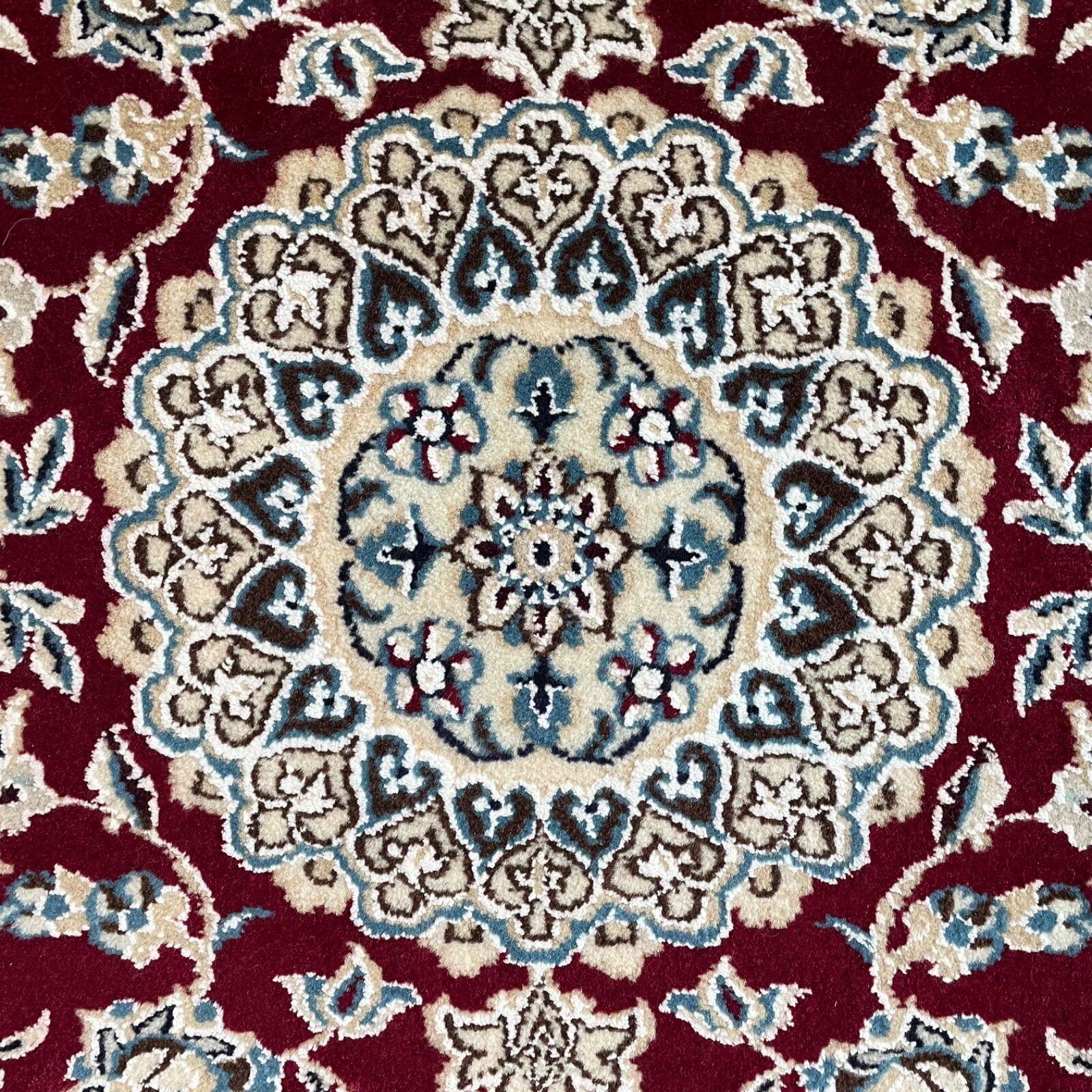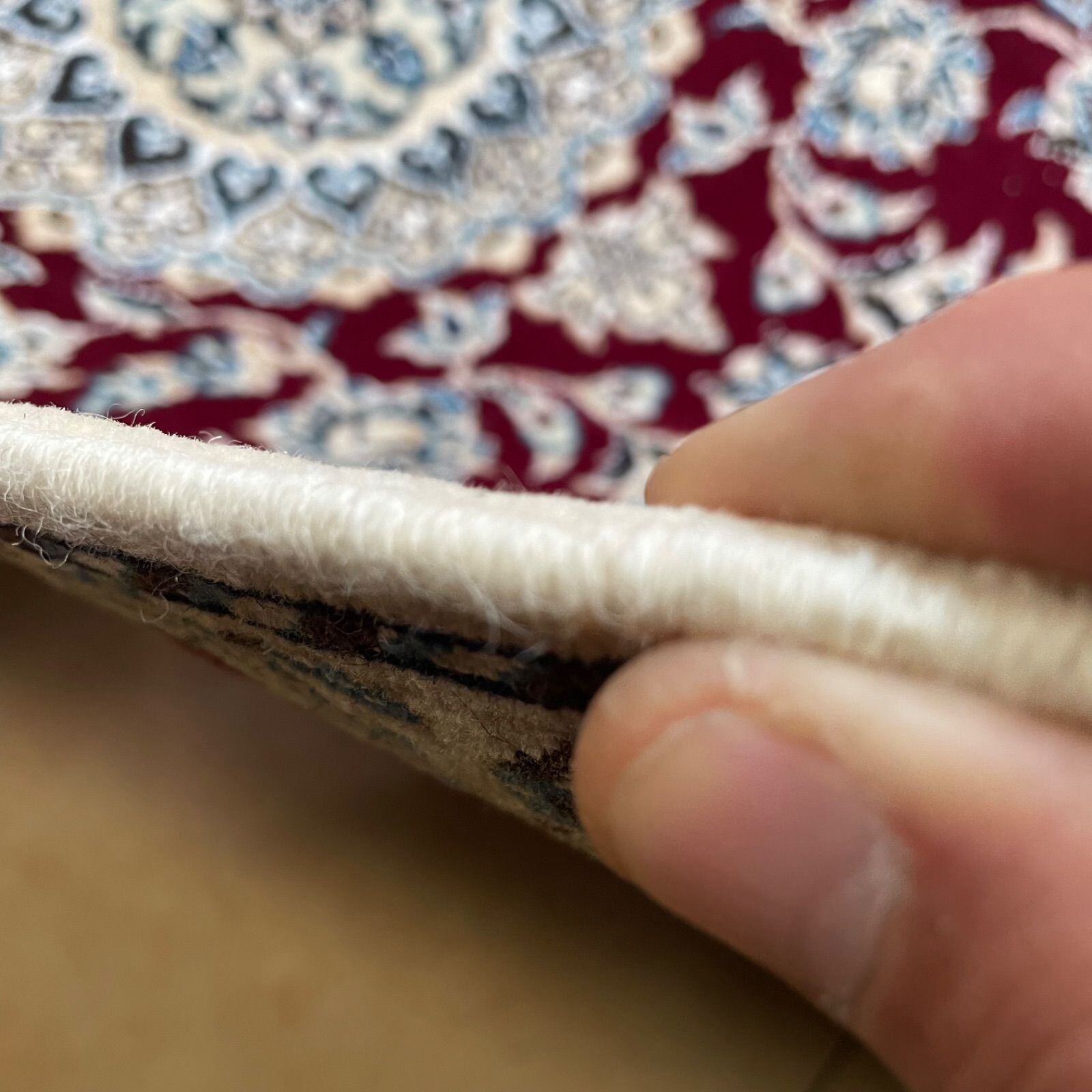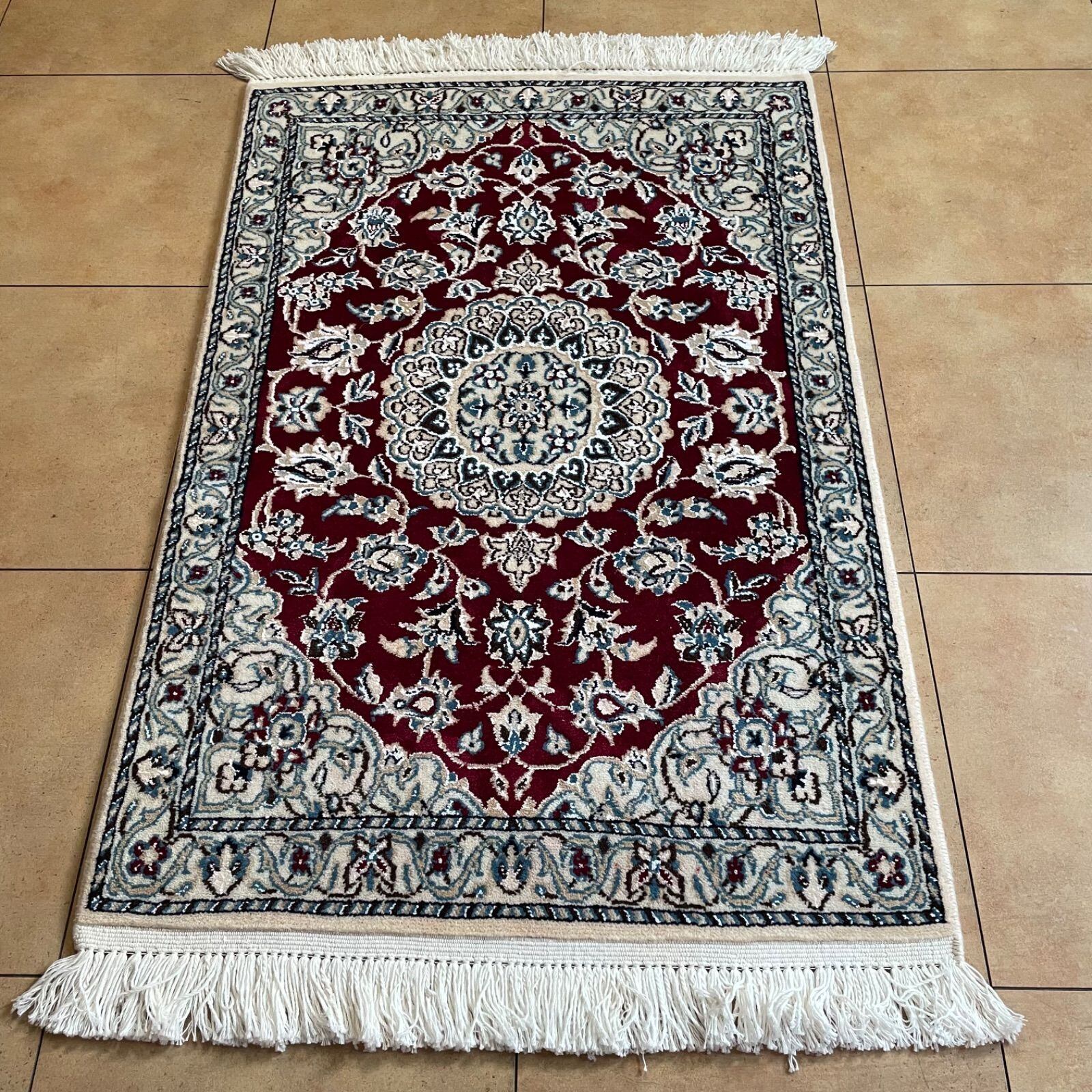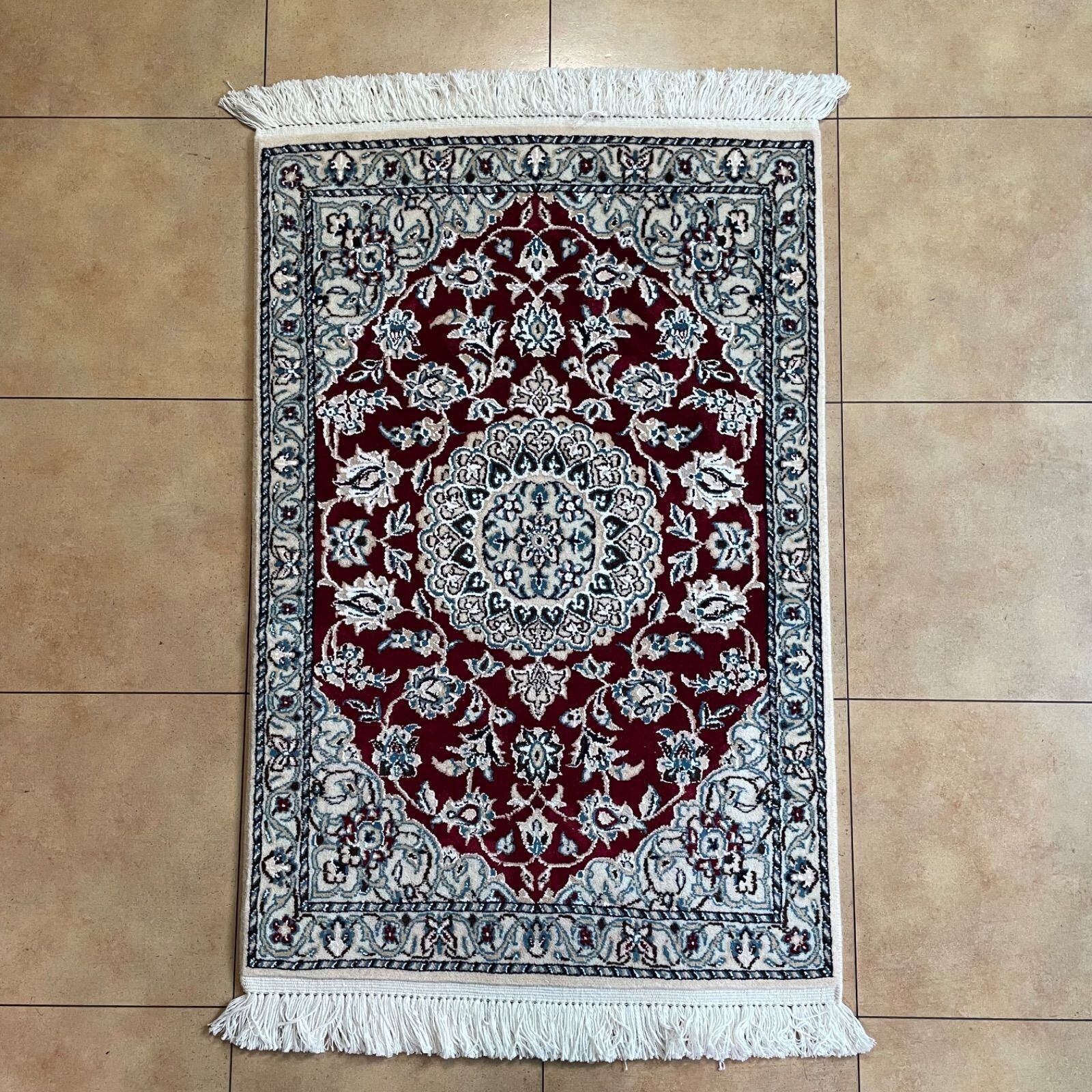 ペルシャ絨毯 ナイン産 ワインレッド 手織り 玄関マット シルク&ウール イラン直輸入 本物保証 ラグ 60×88cm