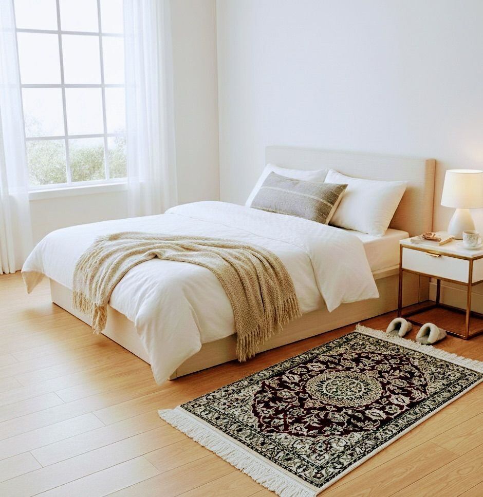 • 素材の質感: ウールの弾力ある踏み心地と、シルクの繊細な光沢が両立。素足で触れるたびに上質さを実感いただけます。