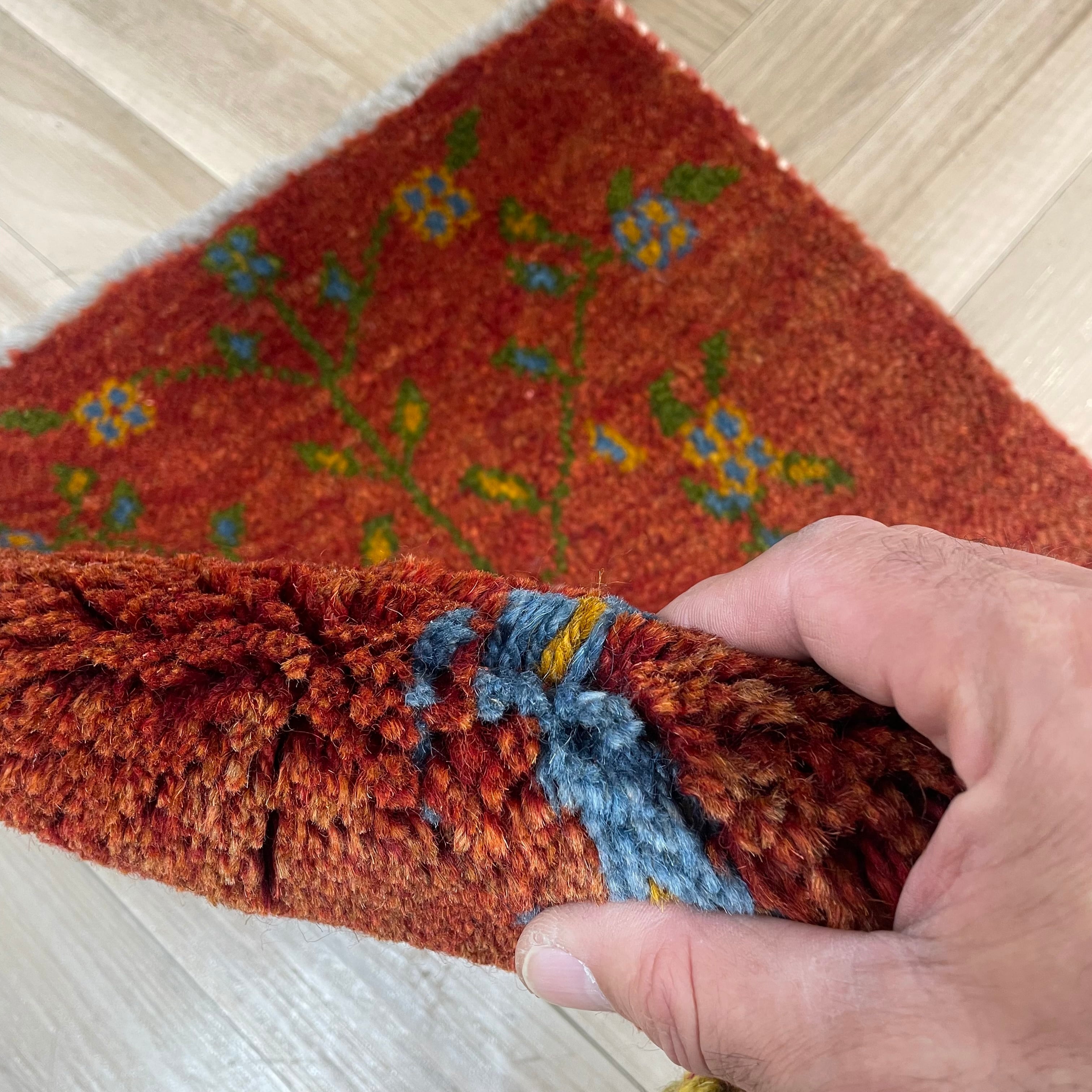 ペルシャ ギャッベ 座布団 大きめ 本物 手織り イラン産 43×46cm Lolbaft (ロルバフト)