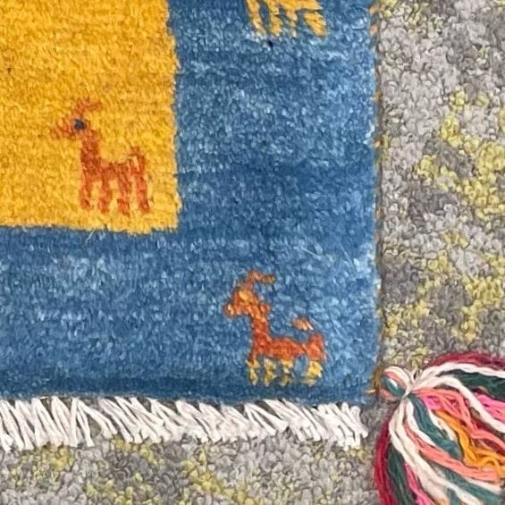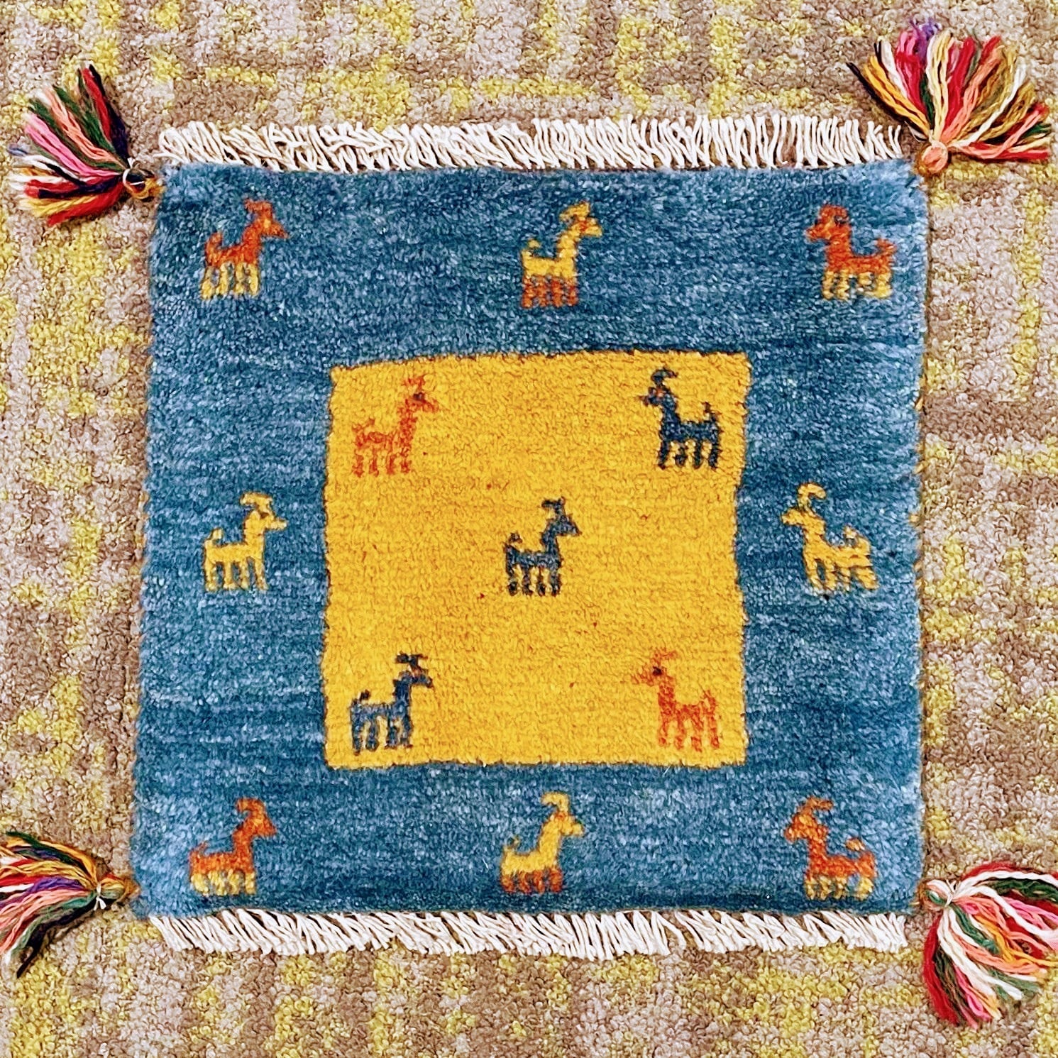 北欧風 ギャッベ座布団 本物 ペルシャ Lolbaft 37×38cm チェアパッド 鹿の紋様 椅子敷